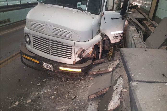 El chofer de un camión perdió el control de su vehículo mientras atravesaba el túnel subfluvial que une las provincias de Santa Fe y Entre Ríos. Se trata de un transporte de huevos que producto del accidente dispersó toda su carga en la vía. quedaron dispersos por la vía.