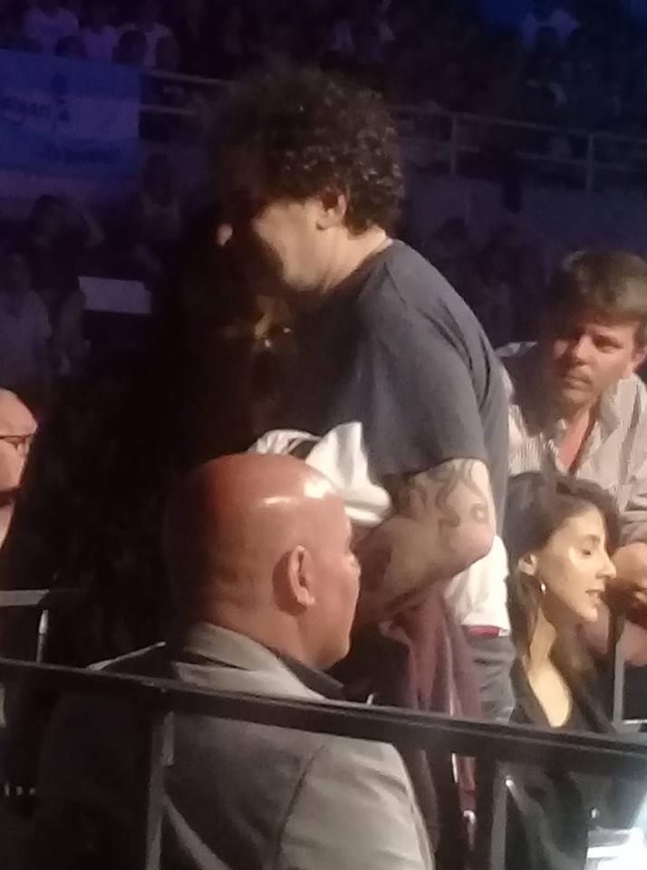 Desde ese momento, el músico se hizo hincha de TNT y anoche fue una de las personalidades más importante de la velada. Lamentablemente, Maidana perdió el invicto ante Parra y no hubo festejo.