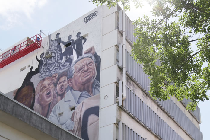 Este miércoles 12 de diciembre, a la 19 horas, se realizará la inauguración oficial de la obra de muralismo mas grande que tiene la ciudad. La pintura realizada por Andrés Iglesias, alias “Niño de Cobre”, conmemora el Centenario de la Reforma Universitaria y se encuentra ubicada en el edificio Damianovich de FIQ.