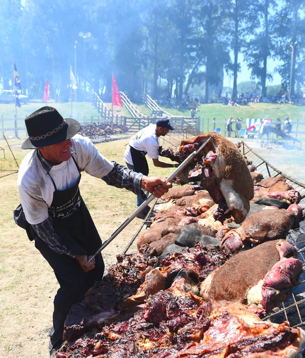 “Esto no es por el récord Guinness, es para ganarle a los argentinos”, dice muy serio Raúl, uno de los cocineros. Uruguay es uno de los principales exportadores mundiales de carne, con un rodeo vacuno que triplica a su población de casi 3,5 millones de habitantes.