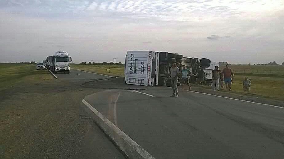 Por causas que aún se investigan, un camión volcó en la ruta 34, a la altura de la localidad de Angélica. El acoplado quedó tumbado sobre la calzada, lo que provocó el corte total de la ruta, hasta que pudieron removerlo.