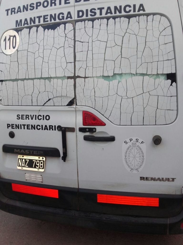En cuanto al vehículo de traslado, donde se transportaba a los reclusos, sufrió un impacto en su chaleco balístico el empleado del SP Marcos Paiva, quien no tuvo inconvenientes ya que el impacto fue detenido por el chaleco. Allí mismo resultó herido el recluso Facundo Muñoz, con un impacto de bala 9 milímetros que le ingresó por el glúteo y se aloja en el abdomen. Muñoz fue intervenido quirúrgicamente en el Hospital Eva Perón de Granadero Baigorria y se encuentra internado en Terapia Intensiva por razones de seguridad, aunque está fuera de peligro.