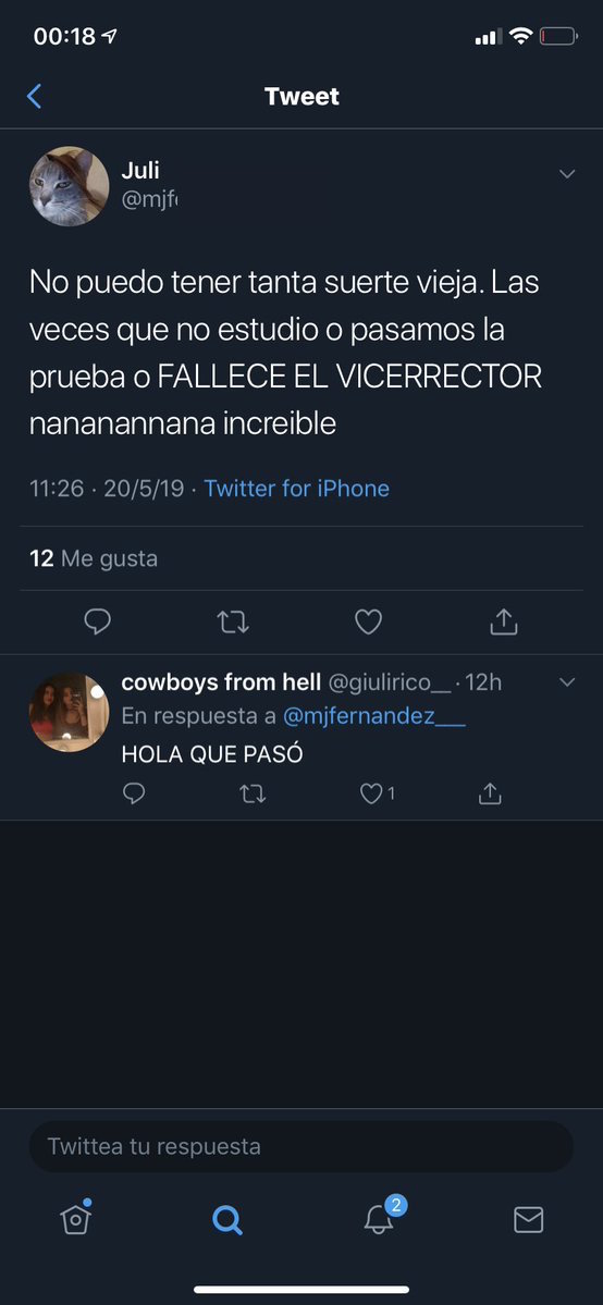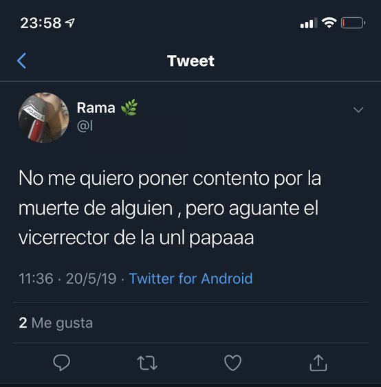 Sin embargo, una pequeña parte de la sociedad pareció disfrutar de la noticia por motivos más que egoístas. Muchos alumnos celebraron la muerte del vicerrector sólo por el hecho de no tener clases. Indignante. El repudio generalizado de la sociedad se hizo sentir cuando un usuario de Twitter (@GeroRatto) recopiló los insultos completamente enojado con la situación.