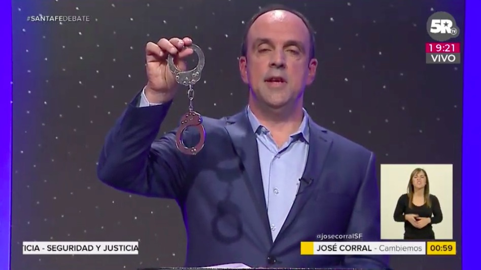 Pero además, hubo chicanas, como la que le hizo Corral, candidato de Cambiemos, al socialismo cuando hablaba del tema seguridad. El actual intendente de Santa Fe levantó unas esposas e indicó: “Esto es lo que les faltaba a los presos que trasladaban en la autopista cuando se fugaron. Nadie pensaba en las víctimas. A quién se le ocurre trasladar asesinos sin esposas”, dijo en referencia a la huída de 9 detenidos del camión de la penitenciaría cuando eran trasladados por la Autopista desde Rosario a Coronda.