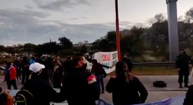 Un grupo de profesores de gimnasia, de boxeo, danza, telas y otros promotores de actividad física cortaron la ruta 168 a la altura de la fuente de la Cordialidad, en la mañana del jueves.