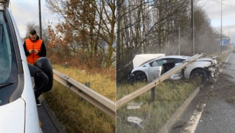 “Chiquito” no sufrió ningún tipo de heridas, pero su Lamborghini blanco quedó destrozado. Porque después de despistarse chocó contra el guarda rail y lo pasó por abajo para terminar incrustándose contra los árboles.