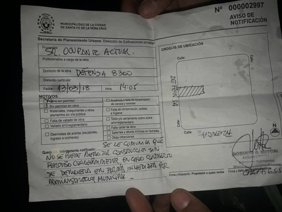 “Amparándose en una supuesta infracción al reglamento de edificación urbana la Municipalidad de la ciudad de Santa Fe efectuó en el día de hoy (13.03.18) intimaciones administrativas a vecinos del barrio de Playa Norte de la ciudad de Santa Fe y seguidamente, en conjunto con Gendarmería Nacional y Policía de la Provincia de Santa Fe, realizaron un procedimiento arbitrario e ilegal en horas de la noche, en abierta contradicción con todas las normas vigentes nacionales e internacionales” comienza el escrito publicado.