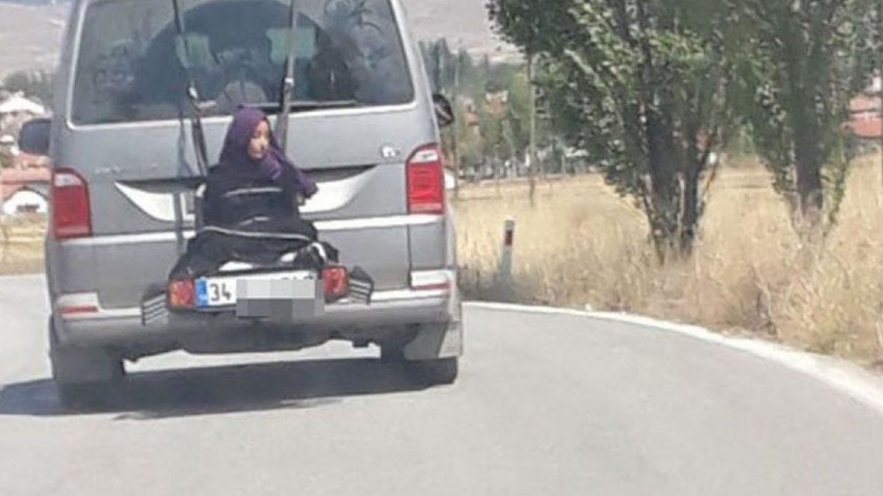 En una carretera de Turquía, un chofer grabó desde su vehículo un acto insólito que reflejó la irresponsabilidad de un padre. El hombre captó perfectamente cómo una menor iba atada al portabicicletas de la furgoneta.