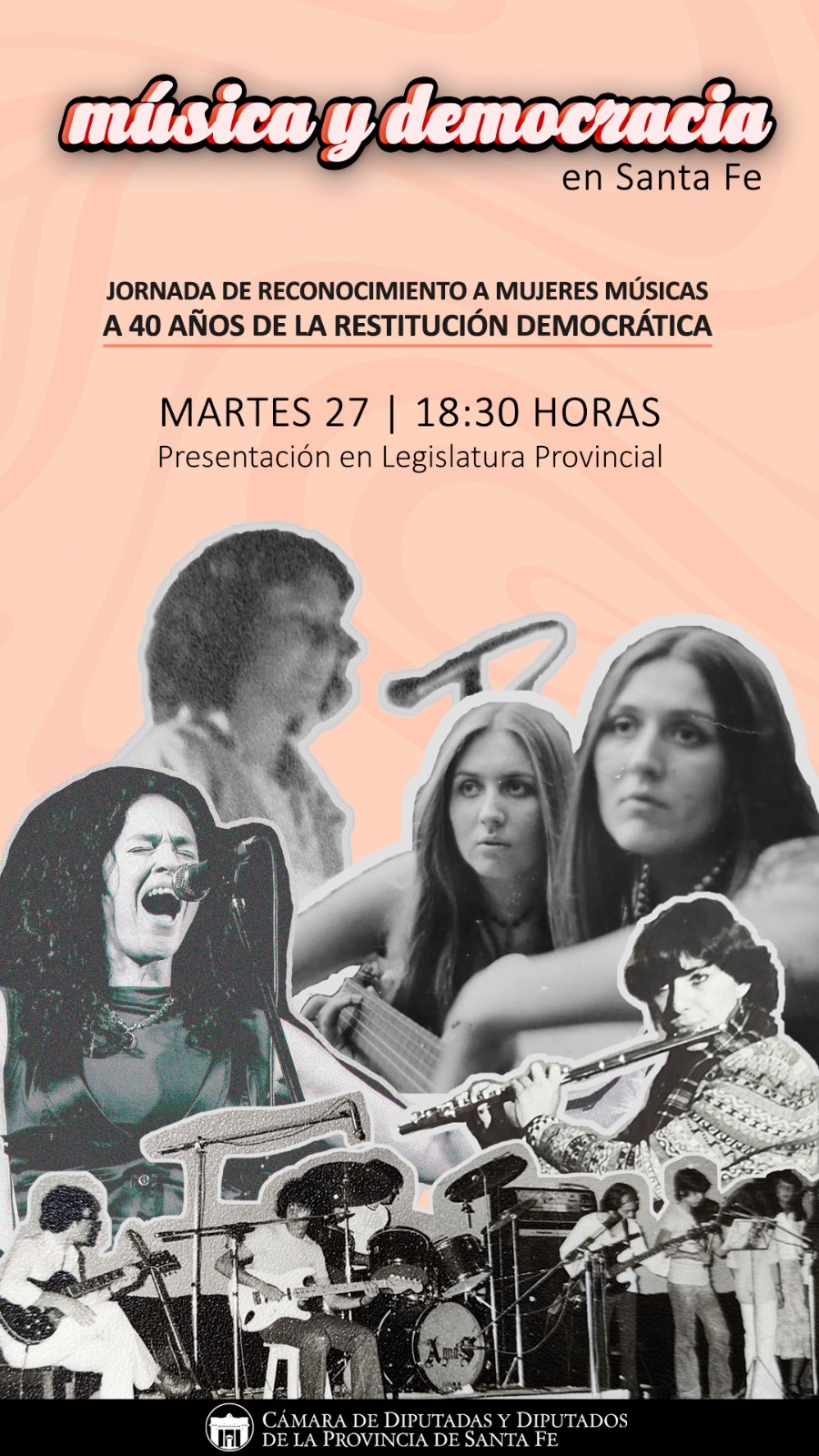 Este martes 27 de junio a partir de las 18.30 hs. en la Cámara de Diputados y Diputadas de Santa Fe (General López 3055) se desarrollará una jornada de reconocimiento a mujeres músicas santafesinas que fueron pioneras en la escena local durante la restitución democrática.