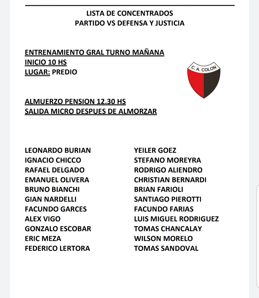 El Sabalero entrenará hoy viernes a partir de las 10 en el Predio Ciudad. Los 22 jugadores concentrados almorzarán en el hotel y luego partirán rumbo a Buenos Aires.