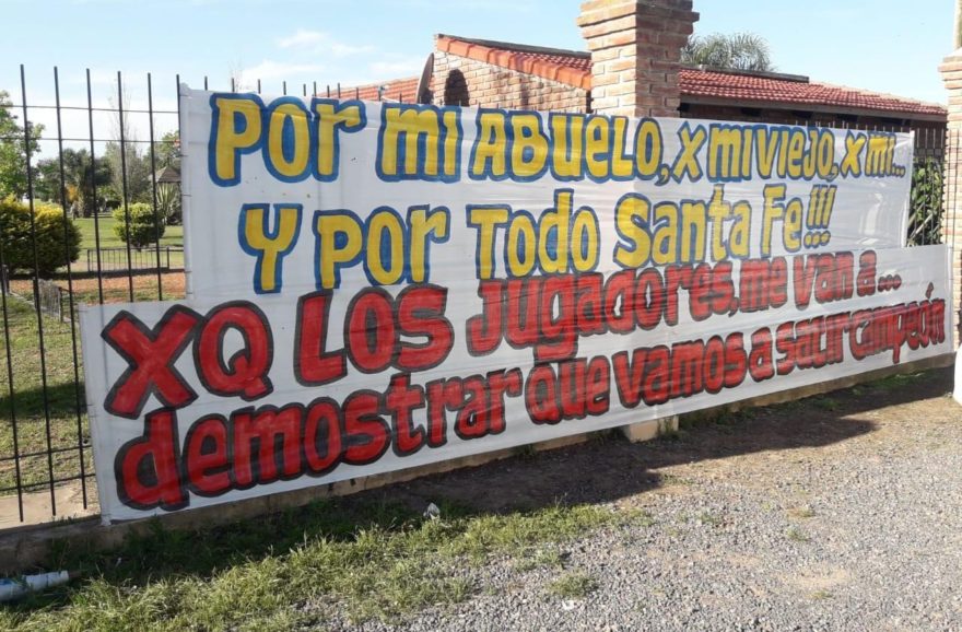 “Por mi abuelo, por mi viejo, por mí. Y por todo Santa Fe”, les escribió en el cartel que puso al lado de la entrada. Ignacio, de 36 años, siente un amor especial por el rojinegro desde que tiene conciencia y todo tiene que ver con su abuelo, que fue el socio vitalicio número 47 del club, y su padre, quien llegó a ser síndico del Sabalero. “De ahí la pasión mía y de mi familia. Los vi hacer muchas cosas por el club”, le cuenta a NexoDiario.