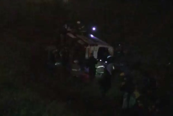Según información policial, el conductor del transporte de la banda se habría descompensado y por eso se produjo la caída del vehículo por un precipicio de 20 metros.
