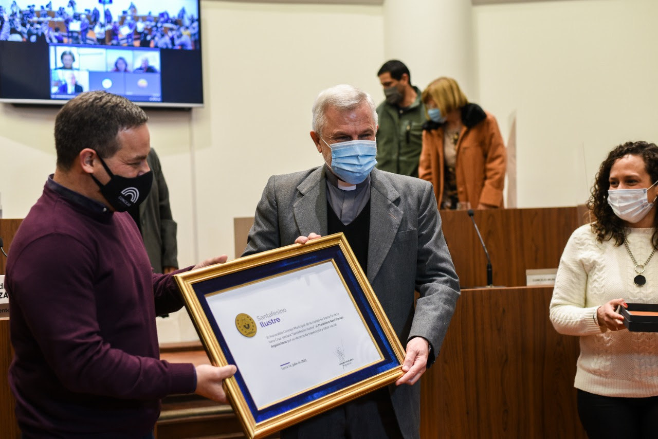 La mayoría de los santafesinos conoce al Padre Axel: tanto por su presencia en distintos barrios de la ciudad, que se tradujo en tareas e iniciativas concretas en beneficio de la comunidad, como por su aporte a la construcción de una sociedad más unida e integrada. Por estos y otros tantos motivos, el presidente del Concejo Municipal, Leandro González, propuso declarar al Padre Axel como “Santafesino Ilustre”.