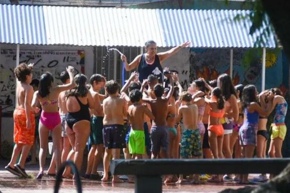 Ante la ola de calor que afecta a gran parte del país, varias escuelas de Santa Fe han decidido tomar medidas para combatir las altas temperaturas en el aula. Una de las medidas adoptadas es sugerir a los padres que envíen a sus hijos al colegio en malla y sin uniforme para que los docentes puedan refrescarlos con mangueras durante los recreos.