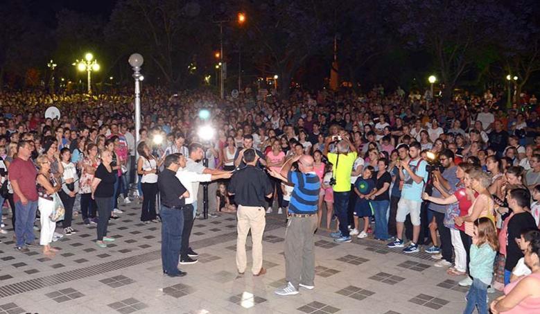 La caminata comenzó en la esquina de San Martín y Aaron Castellanos y se extendió alrededor de la plaza ocupando veredas y las dos calles de la plaza.