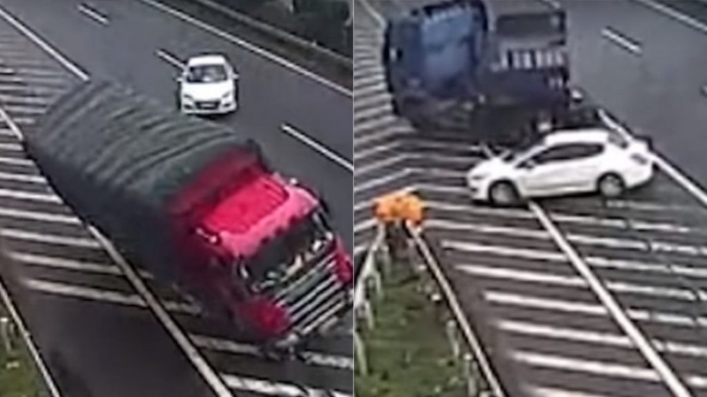 Un verdadero irresponsable al volante causó un doble accidente en la autopista G25, en la provincia china de Zhejiang. El hecho ocurrió el 14 de marzo pero lo difundió recientemente difundido por la Policía de tránsito de la ciudad de Huzhou.