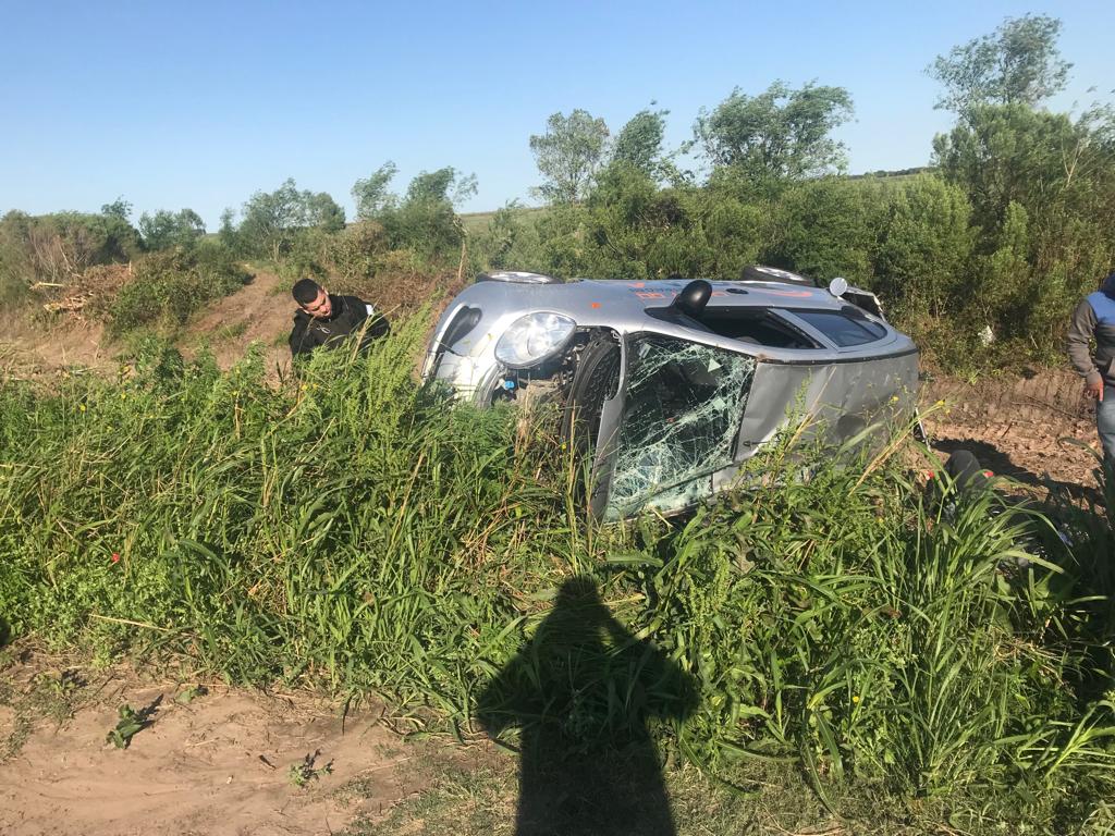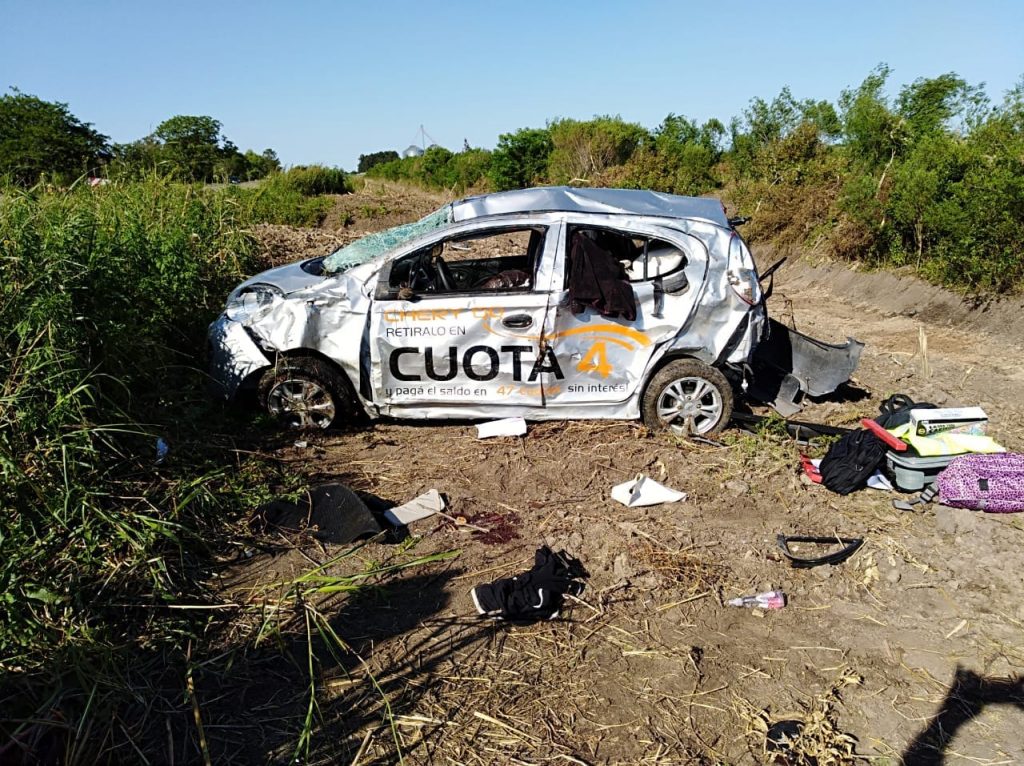 El vehículo se dirigía en sentido sur norte y quedó volcado en la mano del oeste.