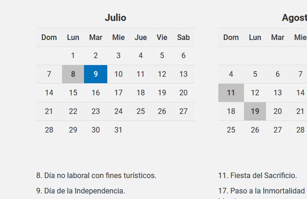 En vísperas de un nuevo feriado, y como sucede en reiteradas oportunidades, los trabajadores sienten incertidumbre acerca de cuales son los días laborales. El próximo martes 9 de julio es feriado inamovible y el lunes aparece como día “no laborable”.