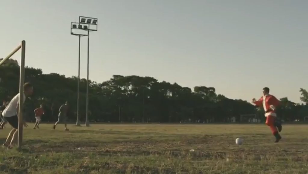 El vídeo comienza con un hombre disfrazado de Papa Noel que corre por las calles de la ciudad. Termina en un potrero pateando un penal y festejando: era el Pulga Rodríguez. Mientras que el jugador, Chaco Acevedo, también tiene su participación en la publicidad.