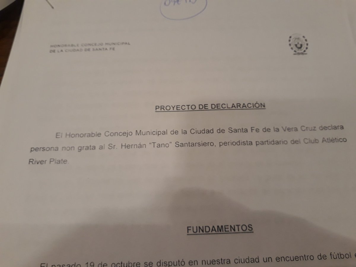 Hoy el Concejo de la Ciudad de Santa Fe declaró persona no grata a Hernán Santarsiero. El periodista, más conocido como “Tano”, protagonizó un episodio en la cancha de Colón el pasado partido contra River. En medio de su relató tuvo dichos que despertaron la furia de los hinchas del Sabalero y el repudio de los santafesinos.