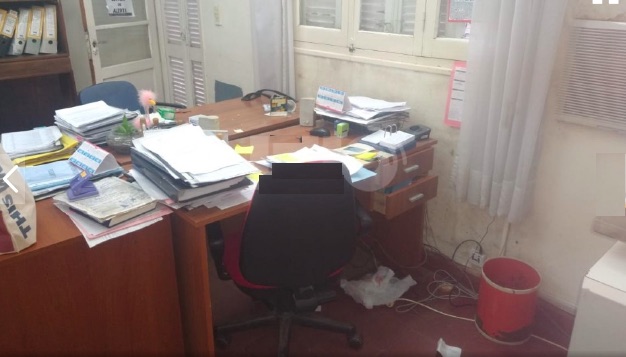 El lunes, cuando los empleados ingresaron a su lugar habitual de trabajo, encontraron las faltantes y varios muebles rotos en el área de Recursos Humanos. Se habían llevado cinco computadoras, una impresora y documentación.