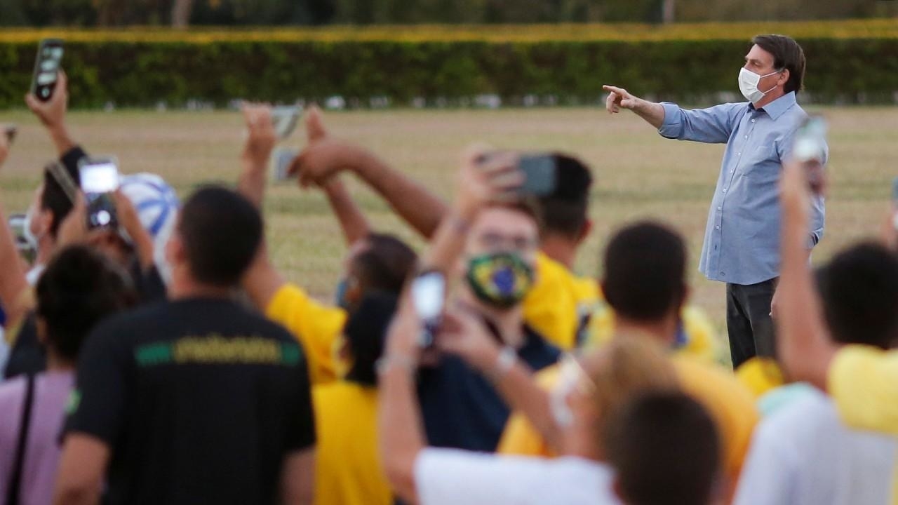A poco más de dos metros de distancia, Bolsonaro recorrió el parque donde estaban sus partidarios, muchos de ellos sin barbijo y sin respetar el distanciamiento social.