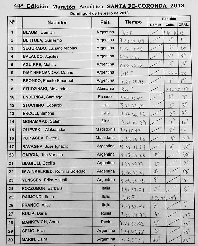 Por último, la nadadora de nuestra ciudad, Vanesa García, también tuvo su premio al esfuerzo de nadar tantas horas. La “Torita” obtuvo el 20° puesto y en damas ocupó el 9° lugar.