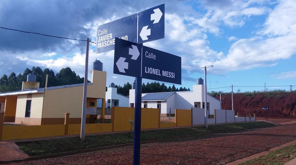 En Misiones, en el barrio San Vicente, a la altura del kilómetro 64 y sobre la Ruta Nacional 14, hay un conjunto de casas que forman una especie de sub-barrio llamado “Sagrada Familia”. Allí, las calles poseen los nombres de grandes figuras del fútbol, e incluso hay personas que tienen la posibilidad de vivir en la esquina de Messi y Mascherano.