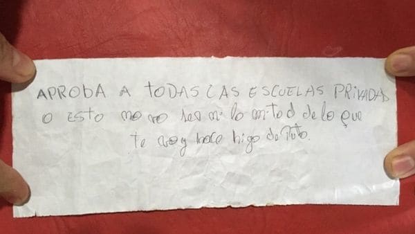La docente, cuyo nombre no trascendió, trabaja en varios colegios privados. Aunque es esposa de un famoso contador que también fue funcionario de la provincia, los investigadores están convencidos de que el ataque fue dirigido a la mujer debido a una nota que dejaron. “Aprobá a todas las escuelas privadas o esto no va a ser ni la mitad de lo que te voy hacer hija de puta”.