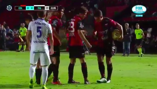 PELEA ENTRE COMPAÑEROS#CopaSuperligaxFOX | Insólita situación se vivió en un tiro libre para Colón: Bernardi y Leguizamón empezaron a discutir y volaron algunos manotazos. Luego el Sabalero casi convierte el primero.