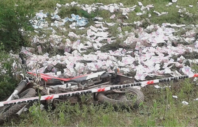 Cuatro delincuentes armados robaron una millonaria suma de la sucursal del Correo Argentino en la localidad tucumana de Burruyacu. El dinero sustraído estaba destinada al pago de las jubilaciones. Al huir, dos de ellos fueron detenidos en una secuencia en la que cientos de billetes quedaron desparramados en un pastizal, junto a una de las motos y las armas de los ladrones.