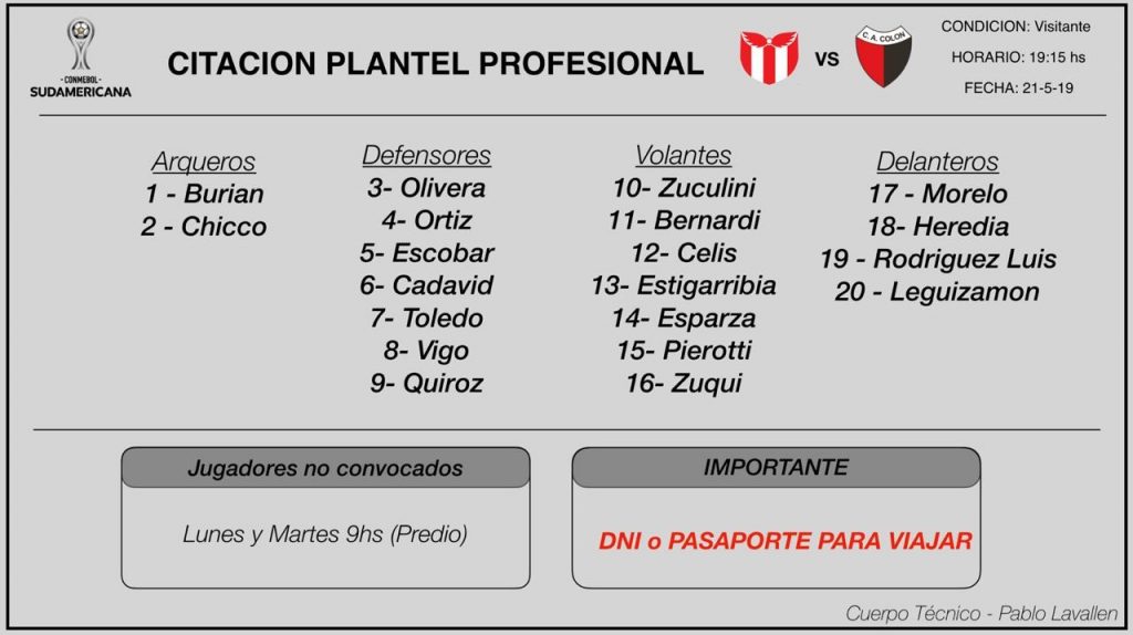 Pablo Lavallén tiene casi todo preparado para el próximo martes. Colón jugará ante River de Montevideo a las 19:15 por el encuentro de ida de la Copa Sudamericana. Tras el largo tiempo de preparación luego de su eliminación temprana en la Copa de la Superliga en manos de Tigre de Pipo Gorosito, vuelve la competencia en Colón.