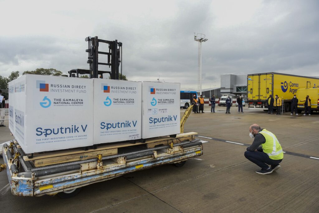 Las vacunas entregadas por el Fondo de Inversión Directa de Rusia (RIDF) y desarrolladas por el Instituto Gamaleya son transportadas en contenedores del tipo “thermobox”, de a 5 dosis por vial y refrigeradas a una temperatura de entre -18 y -20 grados.
