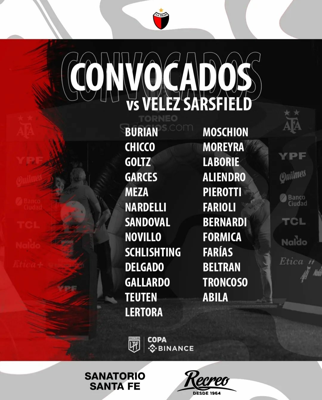 Para este partido, el entrenador rojinegro decidió incluir en la lista a Laureano Troncoso, joven jugador de muy buen desempeño en la reserva y por quién apuestan como la nueva”joya”.