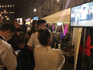 Por la noche, mientras cocinaban para la gente que concurrió al Festival, interrumpieron sus actividades para ver su programa, que está en la etapa final. A las 22.20, tras el debut de Andy Kusnetzoff, se reunieron alrededor de un televisor e intercambiaron sus apreciaciones de lo que estaba pasando.