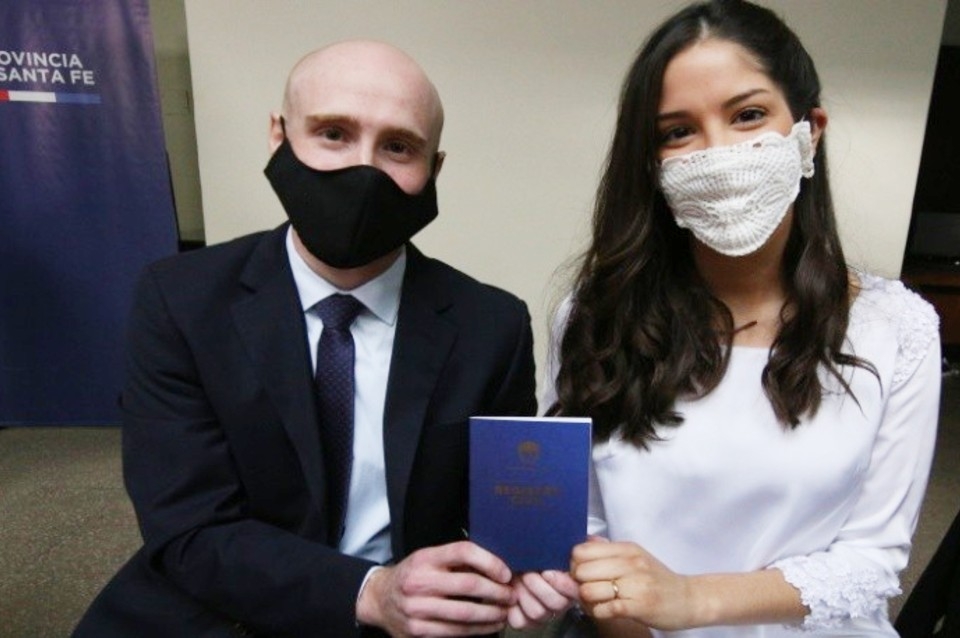 Sin embargo, este miércoles, y más de 100 días después, la provincia de Santa Fe registró su primer casamiento en esta nueva normalidad. Se llaman Ariadna y Brian, y se casaron en la sede del Registro Civil de la provincia en la ciudad de Rosario.