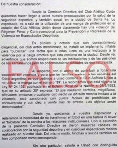 “Lo único que tuvimos es una conversación informal, pero ningún pedido formal”, aseguraron en el Ministerio. La queja de parte de la institución sabalera existió, pero no llegó al reclamo legal.