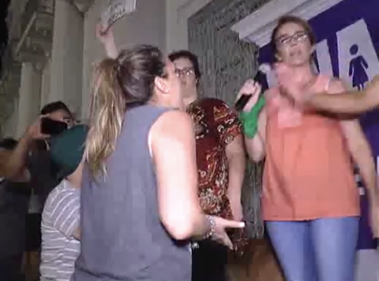 La nanifestante que la increpo es una mujer buen MUJER, CON LOS OVARIOS BIEN PUESTOS. LA ORGANIZACION QUE SE IDENTIFICA POR SUS PAÑUELOS VERDES, NO TENIAN NINGUN DERECHO, ELLAS SI, DE ADUEÑARSE DE UNA MARCHA MOTORIZADA POR EL DOLOR.