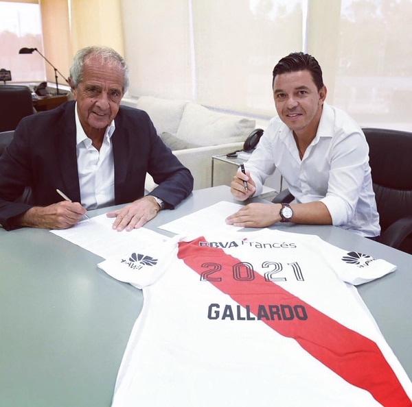 Después de estampar su firma, el entrenador brindó una conferencia de prensa junto al máximo dirigente del club de Núñez. Se mostró muy emocionado por continuar al mando del equipo de Primera. “Siento que estoy en mi mejor momento; con muchísima energía”, expresó Gallardo. Mientras que D’Onofrio acotó: “es el mejor técnico de Argentina”.