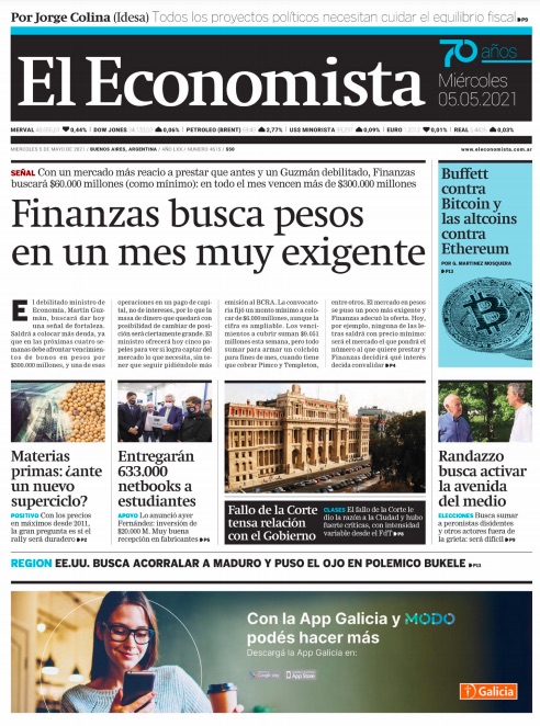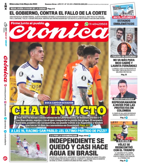 Home POLÍTICA & ECONOMÍA Mirá las tapas de los diarios del miércoles 5 de mayo POLÍTICA & ECONOMÍA Mirá las tapas de los diarios del miércoles 5 de mayo Repasamos los títulos más importantes a través de los principales medios gráficos de Argentina. Por Nexo Diario - 05/05/2021 Compartir Compartir tweet ARTICULOS RELACIONADOSMÁS DEL AUTOR POLÍTICA & ECONOMÍA Pullaro: “El garantismo es una ideología defendida por el kirchnerismo que le hizo mucho daño al país” POLÍTICA & ECONOMÍA Anuncian una nueva baja en las retenciones para el campo POLÍTICA & ECONOMÍA Pullaro sobre los cambios en el Gobierno nacional: “Los vemos con mucha expectativa” POLÍTICA & ECONOMÍA Javier Milei hizo cambios en su gabinete y las acciones argentinas suben en Wall Street POLÍTICA & ECONOMÍA Triunfo para el oficialismo nacional en Santa Fe en la jornada legislativa INFO GENERAL Santa Fe define su pulso político en una jornada clave para todo el país POLÍTICA & ECONOMÍA Las ventas por el Día de la Madre 2025 bajaron 3,5% anual POLÍTICA & ECONOMÍA El Senado rechazó los vetos presidenciales en Garrahan y universidades POLÍTICA & ECONOMÍA Milei anticipa que habrá cambios de gabinete después de las elecciones de octubre POLÍTICA & ECONOMÍA El campo declaró ventas por US$4.180 millones tras la eliminación de retenciones POLÍTICA & ECONOMÍA Milei presentó el Presupuesto 2026 con aumentos en salud, jubilaciones y universidades POLÍTICA & ECONOMÍA La Provincia de Santa Fe ya tiene nueva Constitución