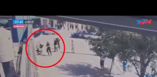 El colectivo que llevaba al equipo de Madelón al estadio chocó una pared que cayó sobre un policía. Fue filmado por una cámara de seguridad.