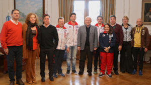 El gobernador de Santa Fe, Miguel Lifschitz, junto al secretario de Desarrollo Deportivo Pablo Catan, recibió a los nadadores santafesinos de aguas abiertas mejor clasificados en la provincia en sus especialidades.