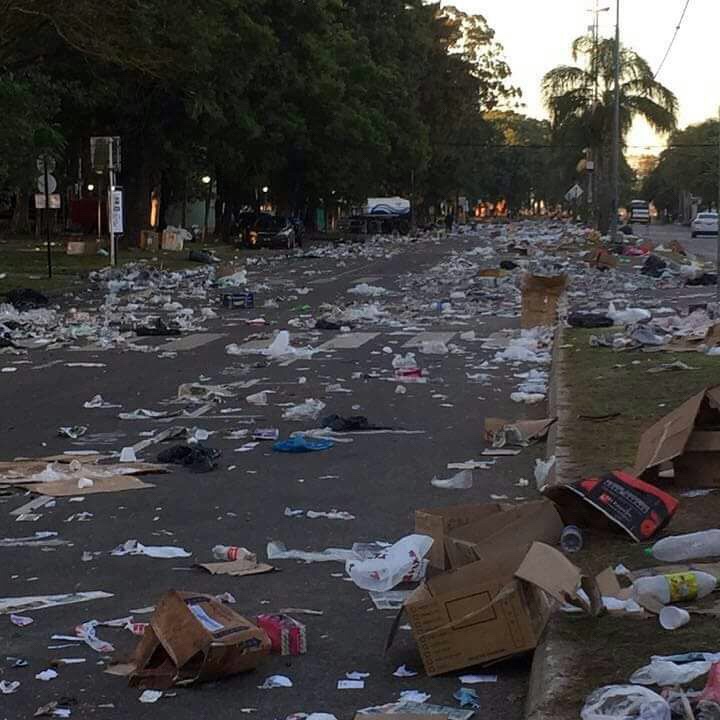 Finalizado dichos eventos se pudo ver la parte negativa de los mismos. Una cantidad enorme de basura tirada en todo el espacio público de “la avenida”y de la costanera santafesina, que hizo pensar a más de un vecino de nuestra ciudad el rol que debe cumplir en el cuidado del medioambiente.