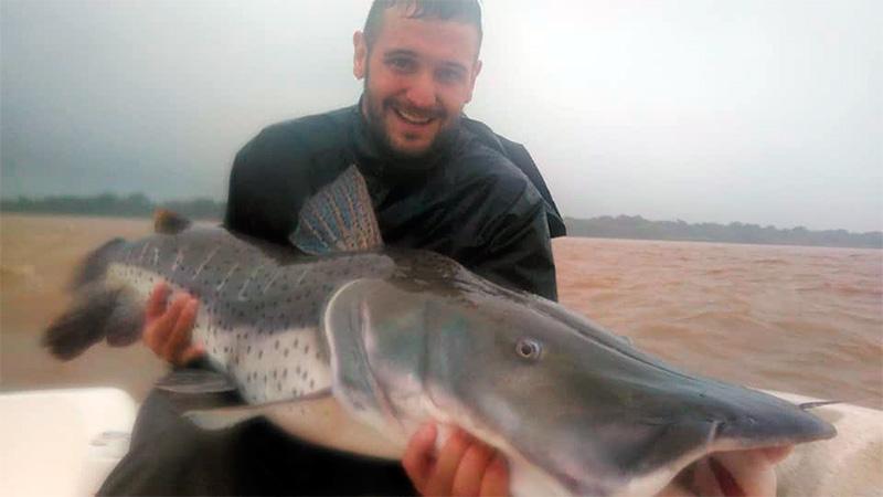 Según el sanjustino Gustavo “no nos dimos cuenta del tamaño del bicho hasta que lo tuvimos a unos metros de la canoa. Ya estando muy cerca aflojó la línea y pareció que lo habíamos perdido, pero después de darle unos metros los volvimos a traer”.