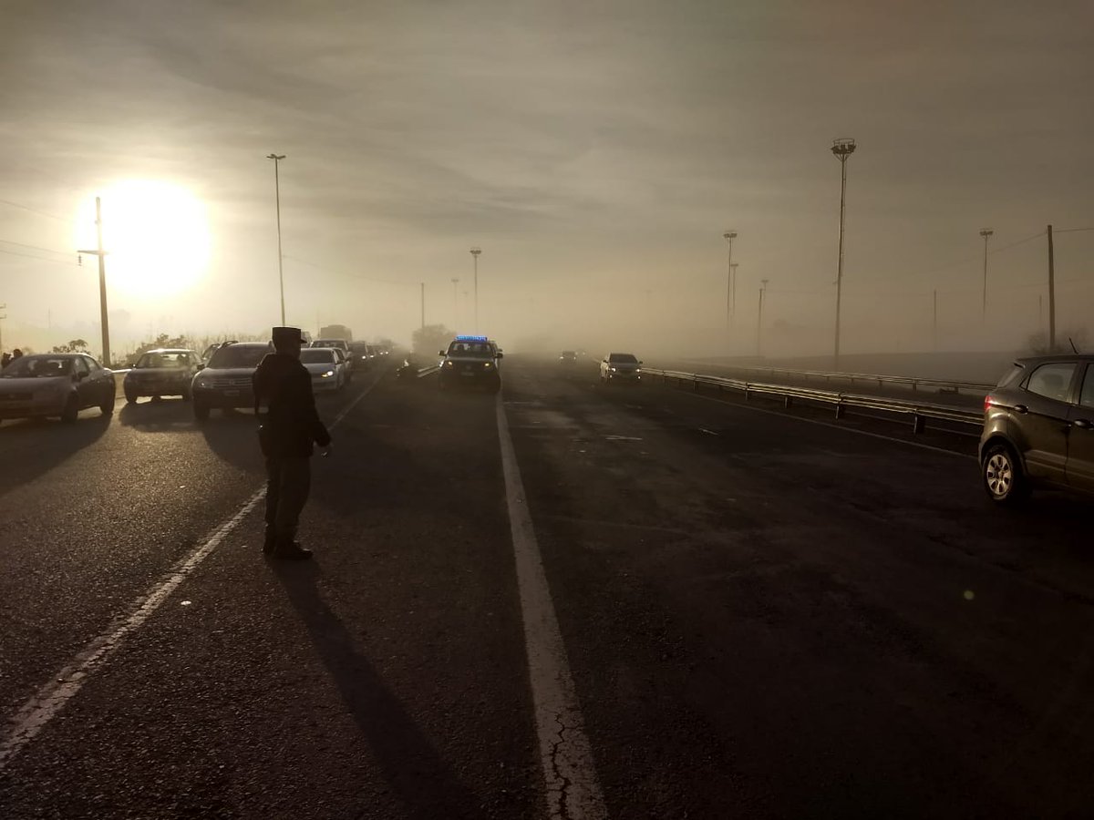 En la Autopista Santa Fe – Rosario hubo grandes bancos de niebla, por ejemplo, con el agravante de que se prendió fuego un basural en el kilómetro 89 a la altura de San Fabián en sentido hacia Rosario. “Circular con precaución”, pedían las autoridades.