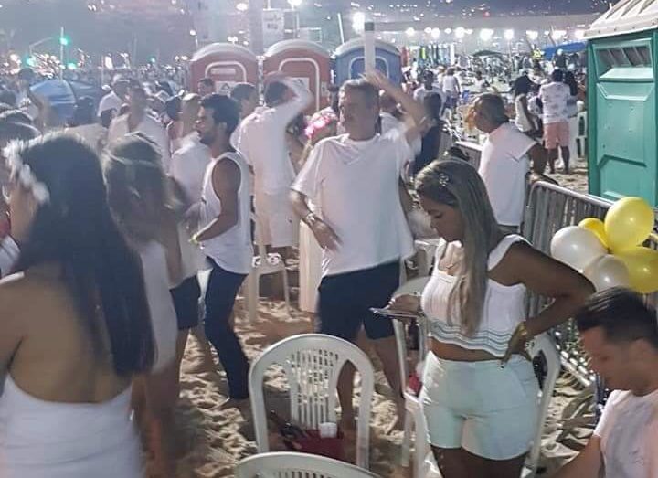 La Reveillon es el segundo espectáculo más importante en Río después del carnaval. Entre los códigos de la fiesta está el de vestirse de blanco, que Rossi cumplió y arrojar flores al mar.