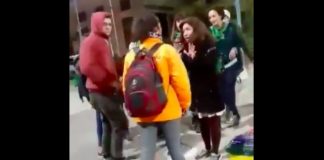 En medio de un pañuelazo en Paraná, una mujer protestó contra un grupo de chicas que pintaban una vereda. Hubo empujones y violencia. Intervino la policía local.