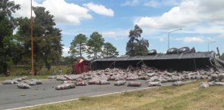 Un 206 y un camión chocaron sobre la autopista. Toda la mercadería que transportaba el camión quedó tendida sobre la calle. Esta cortada la circulación en la mano hacia Santa Fe.