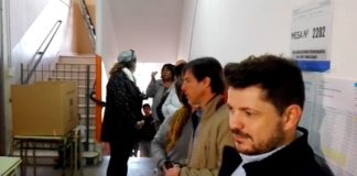 Varias cámaras esperaban el voto del precandidato Marcos Castelló, pero una mujer en la cola se enojó con los periodistas.