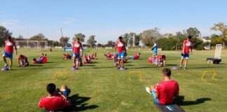 El Tatengue volvió a los entrenamientos con la menta puesta en el encuentro de la próxima semana ante el Granate. Federico Vera y Nery Leyes, con la atención de Azconzábal.